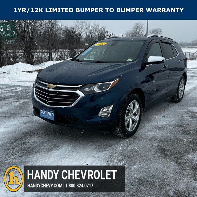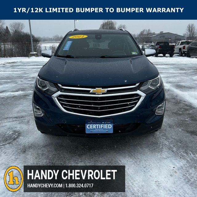 Handy Chevrolet is proud to present you with another True Market Priced Pre-Owned Vehicle. Transparent Pricing Of $ 19030 !! This 2021 Chevrolet Equinox Premier Chevrolet Certified Pre-Owned is loaded with the following Factory Options: AWD Confidence & Convenience II Package, Driver Confidence III Package (Adaptive Cruise Control, HD Surround Vision, and Safety Alert Seat), Driver Convenience II Package (8-Way Power Front Passenger Seat Adjuster, Heated Rear Seats, Heated Steering Wheel, Ventilated Driver Seat, and Ventilated Front Passenger Seat), Preferred Equipment Group 1LZ, Chevrolet Certified Pre-Owned Certified, AWD, 18" Aluminum Wheels, 2 Rear USB Charging-Only Ports, 2 USB Data Ports, 2 USB Data Ports w/SD Card Reader, 2-Way Power Driver Lumbar Control Seat Adjuster, 3.87 Final Drive Axle Ratio, 4-Wheel Disc Brakes, 6 Speaker Audio System Feature, 6 Speakers, 8-Way Power Driver Seat Adjuster, ABS brakes, Air Conditioning, Alloy wheels, AM/FM radio: SiriusXM, Apple CarPlay/Android Auto, Auto High-beam Headlights, Auto-dimming door mirrors, Auto-dimming Rear-View mirror, Automatic temperature control, Bluetooth® For Phone, Brake assist, Bumpers: body-color, Compass, Delay-off headlights, Driver door bin, Driver vanity mirror, Dual front impact airbags, Dual front side impact airbags, Electronic Stability Control, Emergency communication system: OnStar and Chevrolet connected services capable, Four wheel independent suspension, Front anti-roll bar, Front Bucket Seats, Front Center Armrest, Front dual zone A/C, Front fog lights, Front Passenger 4-Way Manual Seat Adjuster, Front reading lights, Fully automatic headlights, Garage door transmitter, Heated door mirrors, Heated Driver & Front Passenger Seats, Heated front seats, Illuminated entry, Low tire pressure warning, Memory seat, Occupant sensing airbag, Outside temperature display, Overhead airbag, Overhead console, Panic alarm, Passenger door bin, Passenger vanity mirror, Perforated Leather-Appointed Seat Trim, Power door mirrors, Power driver seat, Power Liftgate, Power steering, Power Sunroof, Power windows, Premium audio system: Chevrolet Infotainment 3 Plus, Radio data system, Radio: Chevrolet Infotainment 3 Plus System, Rear anti-roll bar, Rear reading lights, Rear seat center armrest