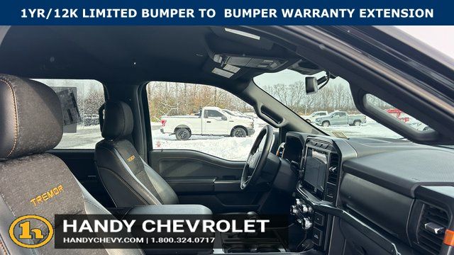 Handy Chevrolet is proud to present you with another True Market Priced Pre-Owned Vehicle. Transparent Pricing Of $ 52492 !! This 2023 Ford F-150 Tremor is loaded with the following Factory Options: 4WD, ABS brakes, Alloy wheels, Compass, Electronic Stability Control, Front dual zone A/C, Heated door mirrors, Heated front seats, Illuminated entry, Low tire pressure warning, Remote keyless entry, and Traction control GVWR: 7,050 lbs Payload Package, 4WD, ABS brakes, Alloy wheels, Compass, Electronic Stability Control, Front dual zone A/C, Heated door mirrors, Heated front seats, Illuminated entry, Low tire pressure warning, Remote keyless entry, Traction control, 4-Wheel Disc Brakes, 6 Speakers, Air Conditioning, AM/FM radio: SiriusXM with 360L, Auto High-beam Headlights, Auto-dimming door mirrors, Automatic temperature control, Brake assist, Bumpers: body-color, Class IV Trailer Hitch Receiver, Delay-off headlights, Driver door bin, Dual front impact airbags, Dual front side impact airbags, Electronic Locking w/3.73 Axle Ratio, Emergency communication system: SYNC 4 911 Assist, Exterior Parking Camera Rear, Front anti-roll bar, Front Bucket Seats, Front Center Armrest, Front fog lights, Front reading lights, Front wheel independent suspension, Fully automatic headlights, Navigation system: Connected Navigation, Occupant sensing airbag, Outside temperature display, Overhead airbag, Overhead console, Panic alarm, Passenger door bin, Passenger vanity mirror, Power door mirrors, Power driver seat, Power passenger seat, Power steering, Power windows, Radio data system, Radio: AM/FM SiriusXM w/360L, Rear reading lights, Rear step bumper, Rear window defroster, Security system, Speed control, Speed-sensing steering, Split folding rear seat, Steering wheel mounted audio controls, SYNC 4 w/Enhanced Voice Recognition, Tachometer, Telescoping steering wheel, Tilt steering wheel, Trip computer, Turn signal indicator mirrors, Unique Sport Cloth 40/Console/40 Power Front Seat, Variably intermittent wipers, Voltmeter, and Wheels: 18" Alloy w/Dark Matte Finish!!