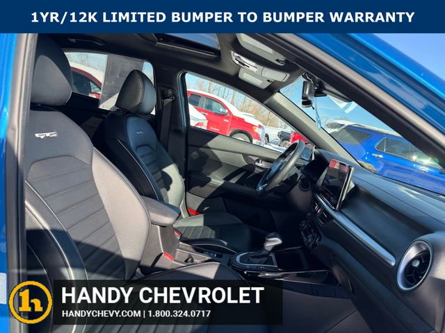 Handy Chevrolet is proud to present you with another True Market Priced Pre-Owned Vehicle. Transparent Pricing Of $ 18998 !! This 2023 Kia Forte GT-Line is loaded with the following Factory Options: GT-Line Premium Package (Electronic Parking Brake (EPB), Forward Collision Avoidance-Assist - Cyclist, LED Interior Lighting, Navigation-Based Smart Cruise Control (NSCC), Power Sunroof, Radio: harman kardon Premium Audio, Smart Cruise Control w/Stop & Go, and Wireless Charging), GT-Line Sport Premium Package (10-Way Power Driver's Seat, Heated & Ventilated Front Seats, Rear AC Vent, Rear USB Charger, and SynTex Seat Trim), 17" x 7.0J Alloy Wheels, 4-Wheel Disc Brakes, 6 Speakers, ABS brakes, Air Conditioning, Alloy wheels, AM/FM radio: SiriusXM, Apple CarPlay & Android Auto, Auto High-beam Headlights, Automatic temperature control, Brake assist, Bumpers: body-color, Carpet Floor Mats, Cloth & SynTex Seat Trim, Delay-off headlights, Driver door bin, Driver vanity mirror, Dual front impact airbags, Dual front side impact airbags, Electronic Stability Control, Emergency communication system, Exterior Parking Camera Rear, Front anti-roll bar, Front Bucket Seats, Front Center Armrest, Front dual zone A/C, Front fog lights, Front reading lights, Front wheel independent suspension, Fully automatic headlights, Heated door mirrors, Illuminated entry, Leather Shift Knob, Leather steering wheel, Low tire pressure warning, Mudguards (GT-Line), Navigation System, Occupant sensing airbag, Outside temperature display, Overhead airbag, Overhead console, Panic alarm, Passenger door bin, Passenger vanity mirror, Power door mirrors, Power steering, Power windows, Radio data system, Radio: 10.25" Display Audio, Rear seat center armrest, Rear window defroster, Remote keyless entry, Security system, Speed control, Split folding rear seat, Spoiler, Sport steering wheel, Steering wheel mounted audio controls, Tachometer, Telescoping steering wheel, Tilt steering wheel, Traction control, Trip computer, Turn signal indicator mirrors, and Variably intermittent wipers!!